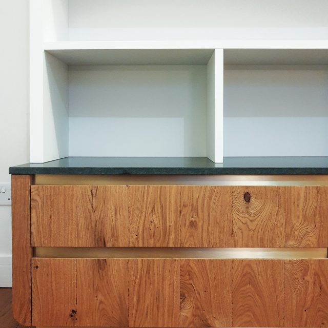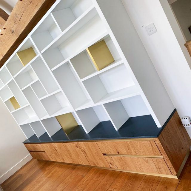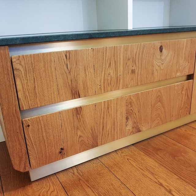 Rustic Oak and Brass Bookcase